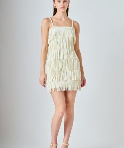Endless Rose Women’s Dresses Faux Suede Fringe Mini Dress | Ivory
