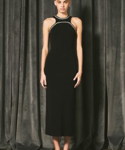Endless Rose Women’s Dresses Jewel Trim Maxi Velvet Dress | Black