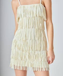 Endless Rose Women’s Dresses Faux Suede Fringe Mini Dress | Ivory