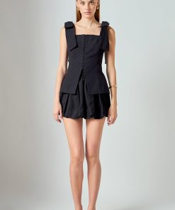 Endless Rose Women’s Allison Linen Blouson Bubble Mini Skirt | Black