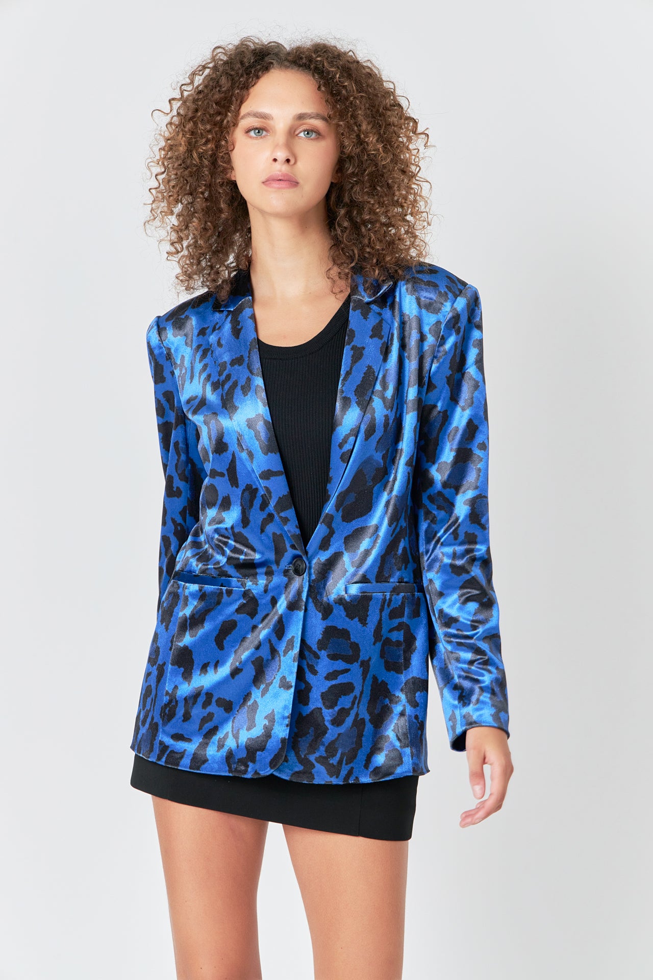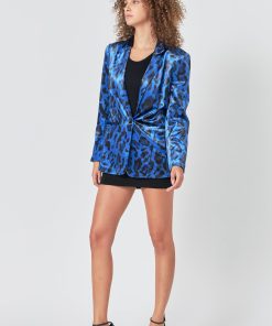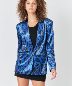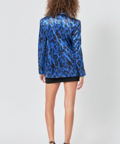 Endless Rose Women’s Animal Print Velvet Blazer | Cobalt Blue