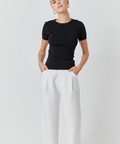 Introducing our new Back Cut-out Detail Knit Top. This top is perfect for any occasion, whether you’re headed to the office or out for drinks with friends. The back cut-out detail adds a touch of sass, while the round neckline and short sleeves keep it classy. The knit top is comfortable and breathable, making it perfect for any season. Add this top to your wardrobe and be ready for anything.