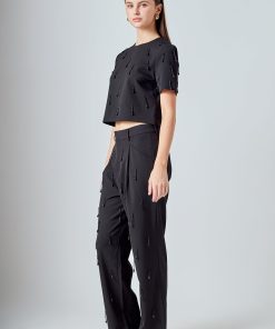 Our Beaded Pants will be the perfect addition to your wardrobe! Featuring a high waistline and a relaxed straight fit, these stylish pants are covered in beaded embellishments that will surely make you stand out. The hook and bar closure give you the perfect fit for any shape or size. Great for formal or casual occasions, these unique trousers are sure to turn heads. Shop now to make a statement and experience the ultimate in comfort and style.
