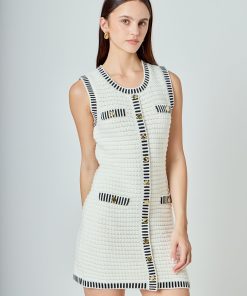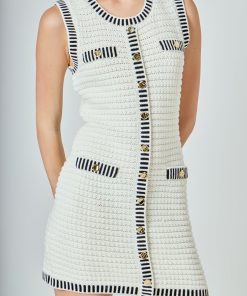 Endless Rose Women’s Border Sweater Mini Dress | Cream & Black