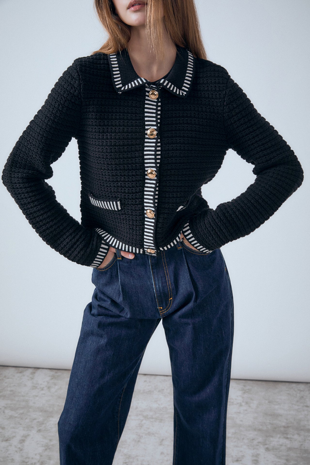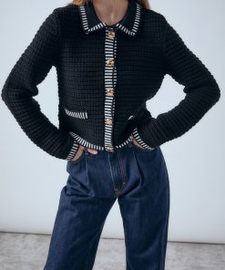 Endless Rose Women’s Celine Border Buttoned Jacket | Black & Cream