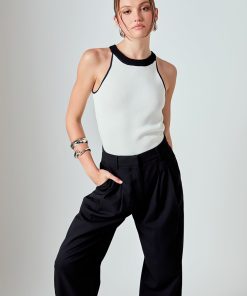 Stand out from the crowd in our Contrast Halter Neck Top! Featuring a contrasting neckline and a sleek halter neckline, this top is perfect for any occasion. With its sleeveless design and effortless pull over style, it’s both stylish and comfortable. Made from high-quality materials, this top will keep you cool and chic all day long. Elevate your everyday style with this must-have top. Pair it with jeans for a casual look or a skirt for a more elegant vibe. Don’t miss out on this trendy top!