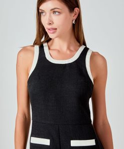 Upgrade your romper game with our must-have Contrast Romper. Made from high-quality tweed fabric, this romper adds a touch of sophistication to your wardrobe. The contrasting details on the pocket band and round neckline make a bold statement, while also providing added functionality. Perfect for any occasion, this versatile romper can be dressed up or down. With its subtle yet chic design, this romper is sure to turn heads. Elevate your style and stand out from the crowd in our Contrast Romper. Shop now and experience the perfect blend of style and comfort!