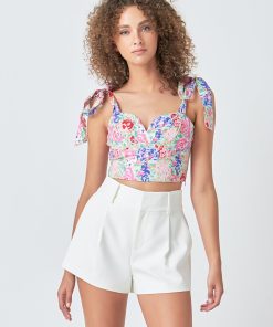 Style your summer wardrobe with this fresh Cotton Floral Print Top. Crafted from breathable 100% cotton fabric this top features a fitted silhouette shoulder bow-tie detail sweetheart bust-line and sleeveless design for a stylish look. Perfect for those hot summer days.