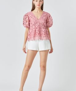 Darling, this top is a must-have for your next cocktail party! With pretty crochet lace and short puff sleeves, this top is perfect for showing some skin. The front and back v-neckline is ultra-flattering, while the lace trim adds a touch of elegance. The center back zipper makes it easy to get in and out of this beauty, while the lined bodice ensures you feel confident all night long.
