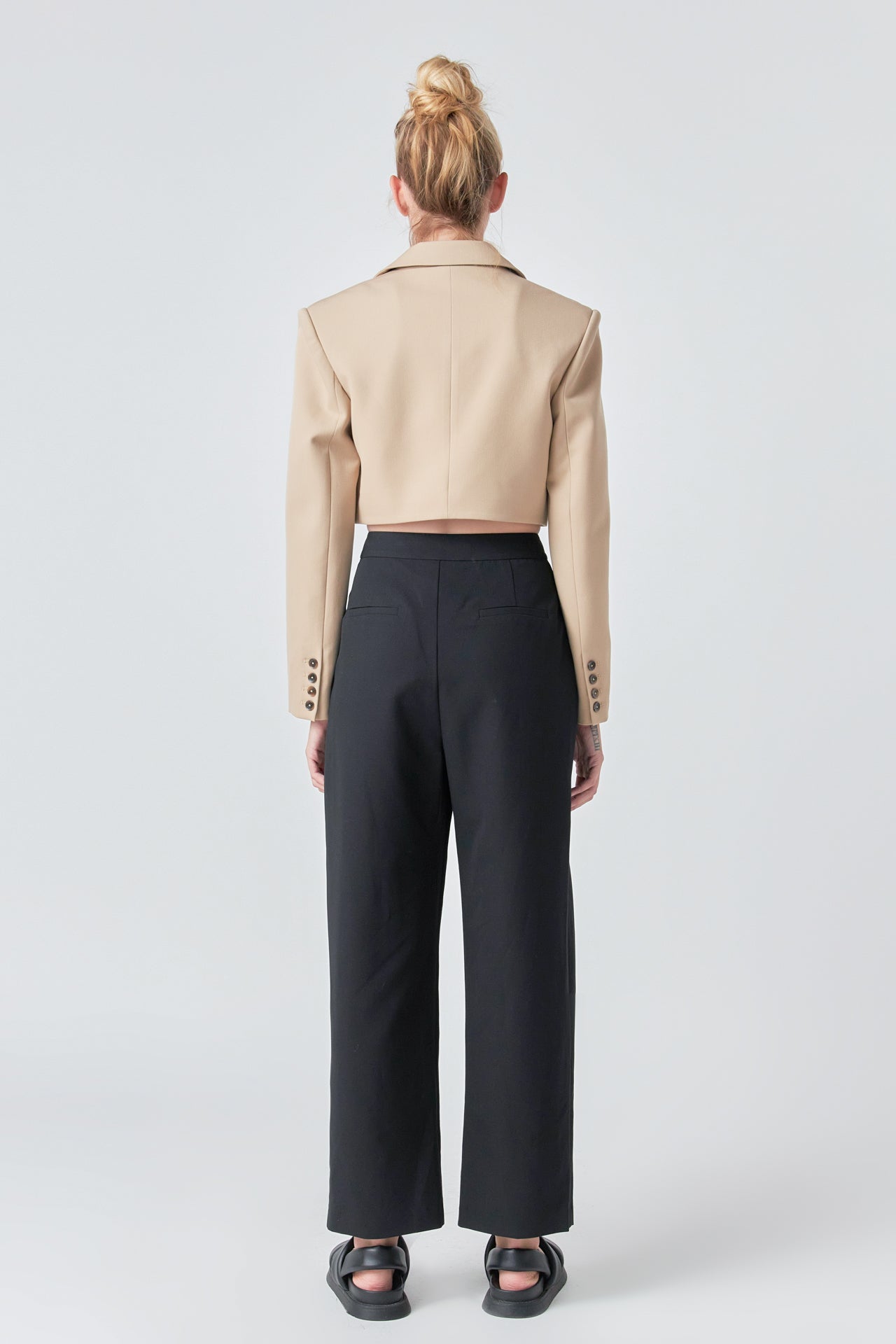 Introducing our must-have Cropped Jacket, designed for fashion-forward women seeking a touch of sophistication. With a stylish collar and V neckline, this jacket exudes elegance and versatility. Crafted with long sleeves and sleeve opening buttons, it is perfect for both day and evening occasions. Made from premium quality fabric, it provides ultimate comfort and a flattering fit. Wear it over any outfit for an instant upgrade or dress it up with statement pieces for a chic look. Stand out from the crowd with our Cropped Jacket, a must-have for every wardrobe.