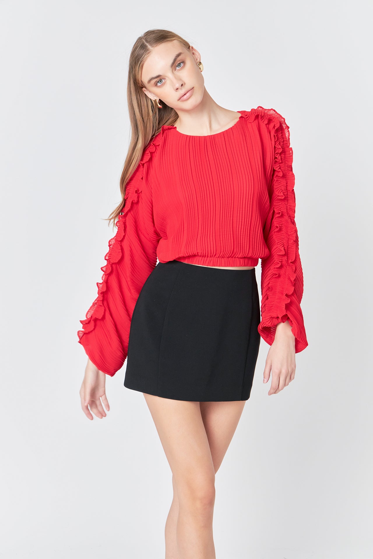 - Long sleeve with ruffle detail