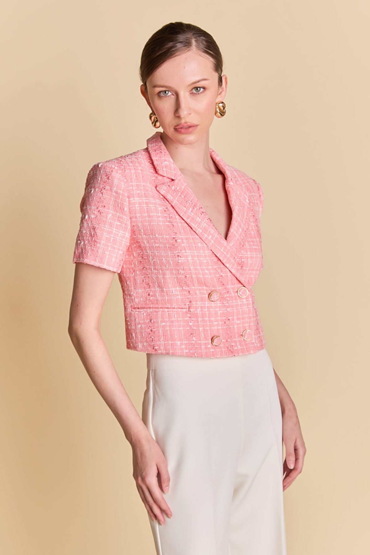 Endless Rose Women’s Cropped Tweed Jacket | Pink|lilac|yellow