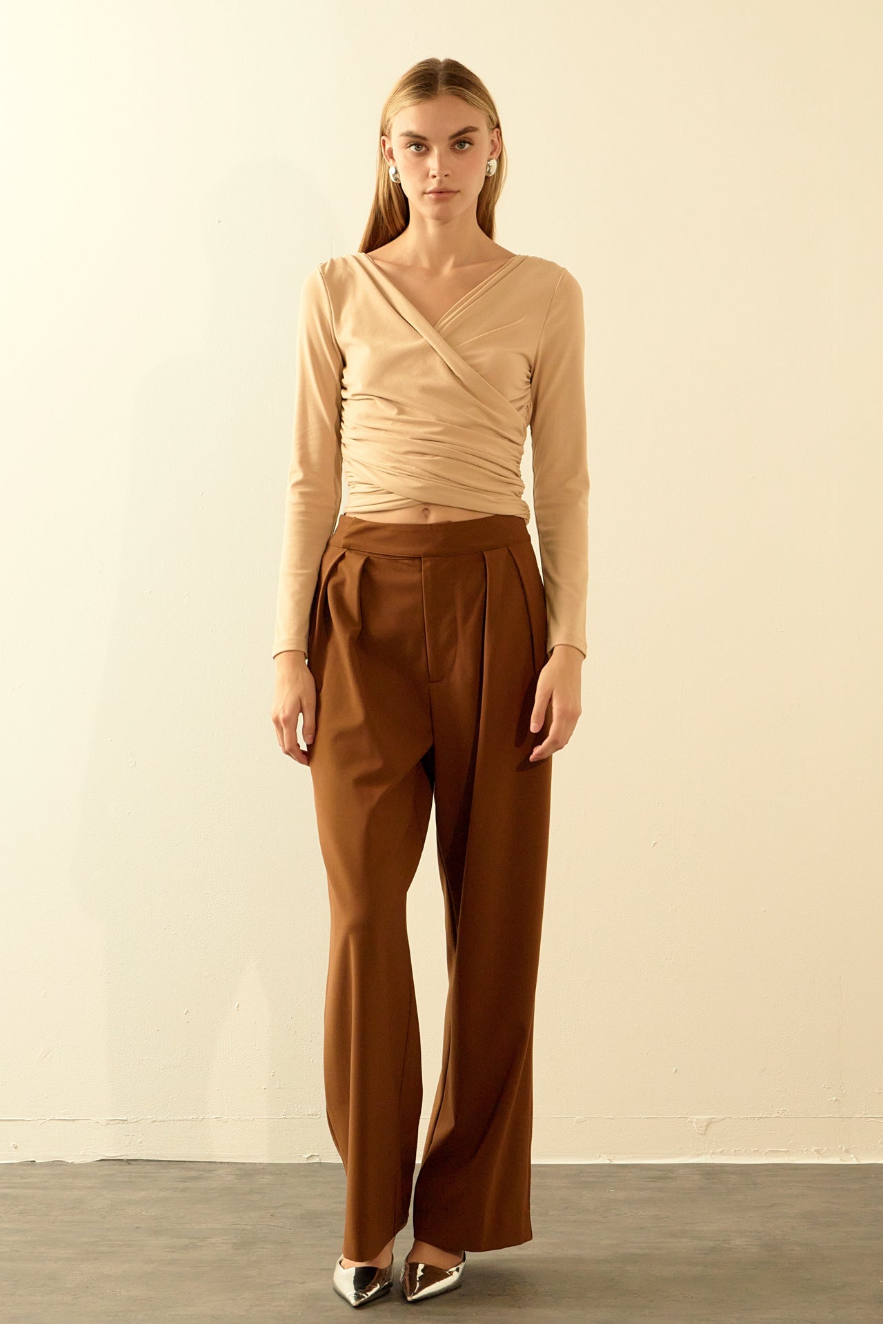Bring effortless elegance to your wardrobe with this chic long sleeve top. Designed with delicate shirring, it adds soft texture and dimension while gently accentuating your curves for a flattering, feminine silhouette. Perfect for both day and night, this versatile piece can be dressed up with tailored trousers or styled casually with your favorite jeans. A timeless essential with a modern twist, it’s a must-have for any well-curated wardrobe.