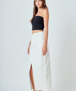 Experience maximum comfort in our Denim Maxi Skirt. Our mid-length pocket-filled denim skirt will keep you looking stylish no matter the occasion. The slit at the center front adds the perfect touch to the piece making it an attractive choice for all. Perfect for any season our maxi skirt will have you standing out from the crowd. Shop sleek denim skirts today and experience the maximum comfort our maxi length delivers.