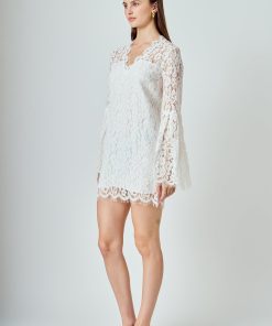 This Bell Sleeves V Neck Lace Dress is perfect for any special occasion. With its deep v-neck and bell sleeves, it’s sure to turn heads. And the attached lining ensures that you’ll feel comfortable and confident all night long. Plus, the metal zipper at the center back gives this dress a little bit of edge. So don’t hesitate. Order your Bell Sleeves V Neck Lace Dress today!