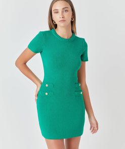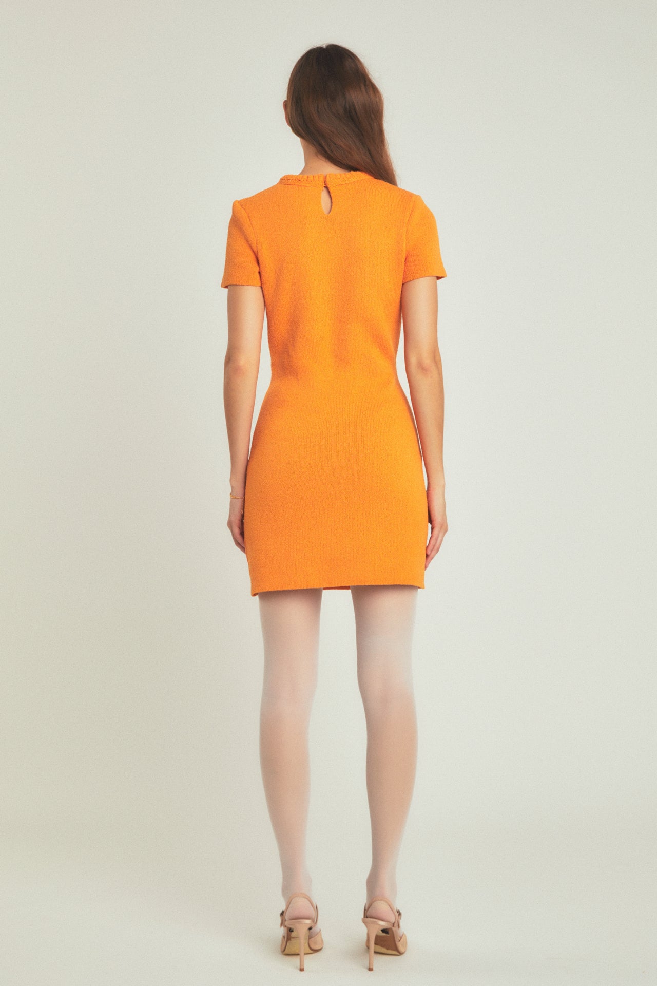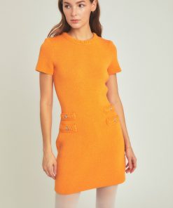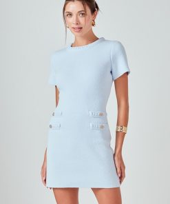 This Braided Mini Knit Dress is just perfect for your everyday look! It features a round neckline, short sleeves, contrast braided details with buttons, and back keyhole with button closure. With this stylish and comfortable dress, you can look good any time of day. The unique design is sure to make a statement and is sure to turn heads. Get yours now!