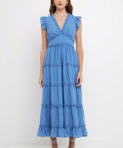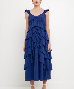 This dress is a must-have for your summer wardrobe! It features a crossed halter neckline, an elastic waist for a comfortable fit, and tiered maxi skirt. Plus, the open back and tiered ruffles provides a flirty finish.