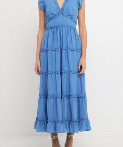 This dress is a must-have for your summer wardrobe! It features a crossed halter neckline, an elastic waist for a comfortable fit, and tiered maxi skirt. Plus, the open back and tiered ruffles provides a flirty finish.