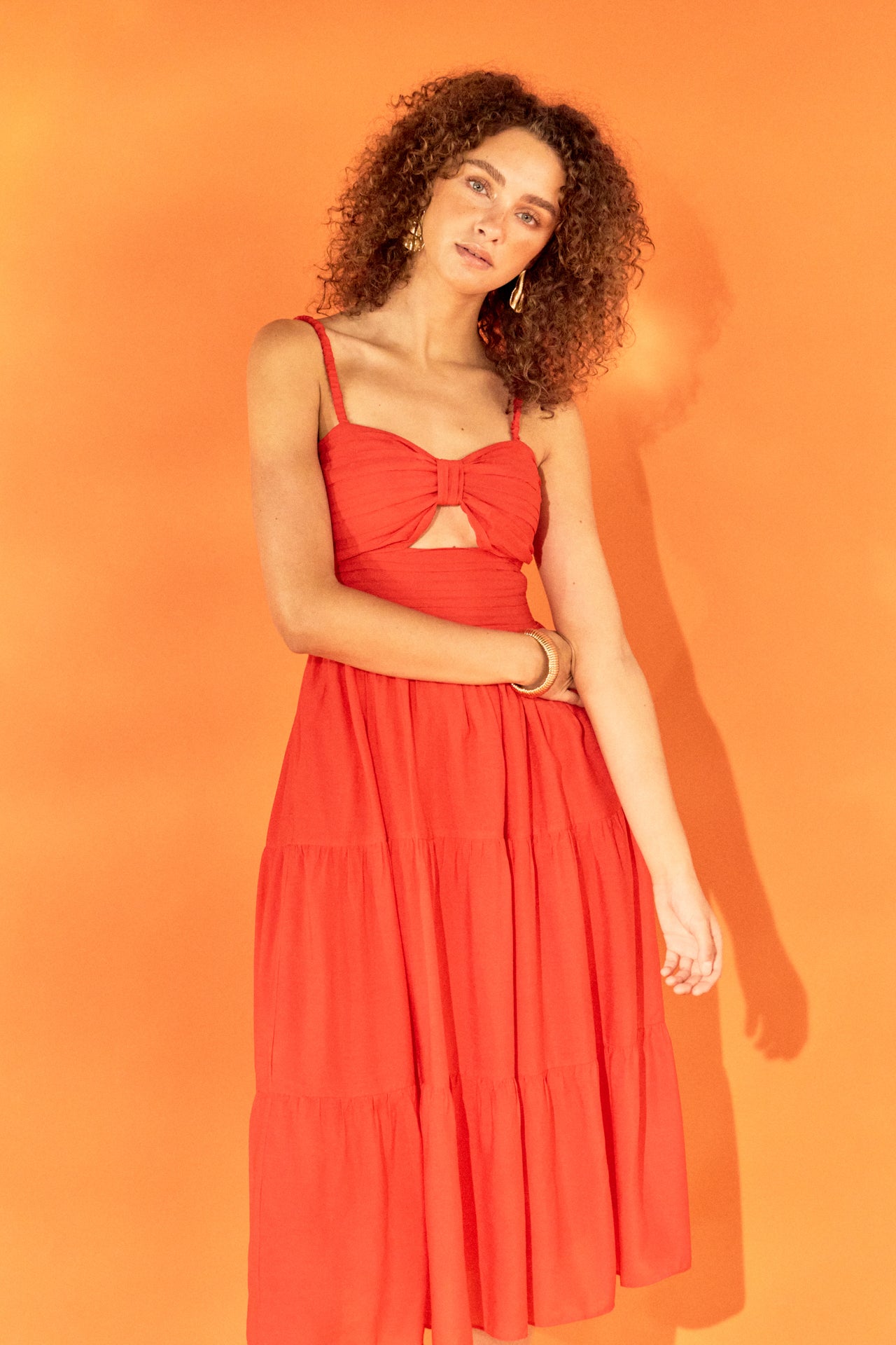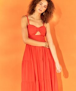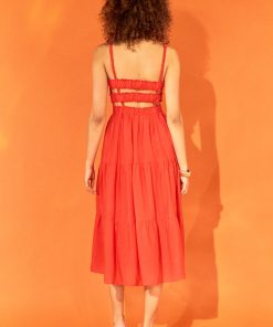 Let your style take center stage this season with this cut-out elastic strap midi dress. Featuring a sweetheart neckline with short puff sleeves and straps this timeless dress is perfect for any occasion. The sleeveless design midi length and back elastic details pair with the cut out details to create a fashion-forward look you can’t resist. Step out in style and create stunning looks wherever you go in this comfortable and stylish dress.