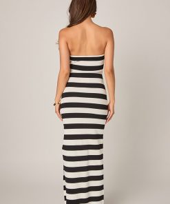 Make a stunning statement in our Danielle Striped Cutout Maxi Dress. This dress features a chic strapless neckline and a flattering maxi length that elongates your silhouette. Crafted from a soft and comfortable knit fabric, it is perfect for both casual and dressy occasions. The bold stripes add a playful touch to the classic design. With its eye-catching cutouts, this dress is sure to turn heads wherever you go. Pair it with sandals for a day out or dress it up with heels for a night out. Don’t miss out on this must-have piece for your wardrobe. Shop now and showcase your unique style!