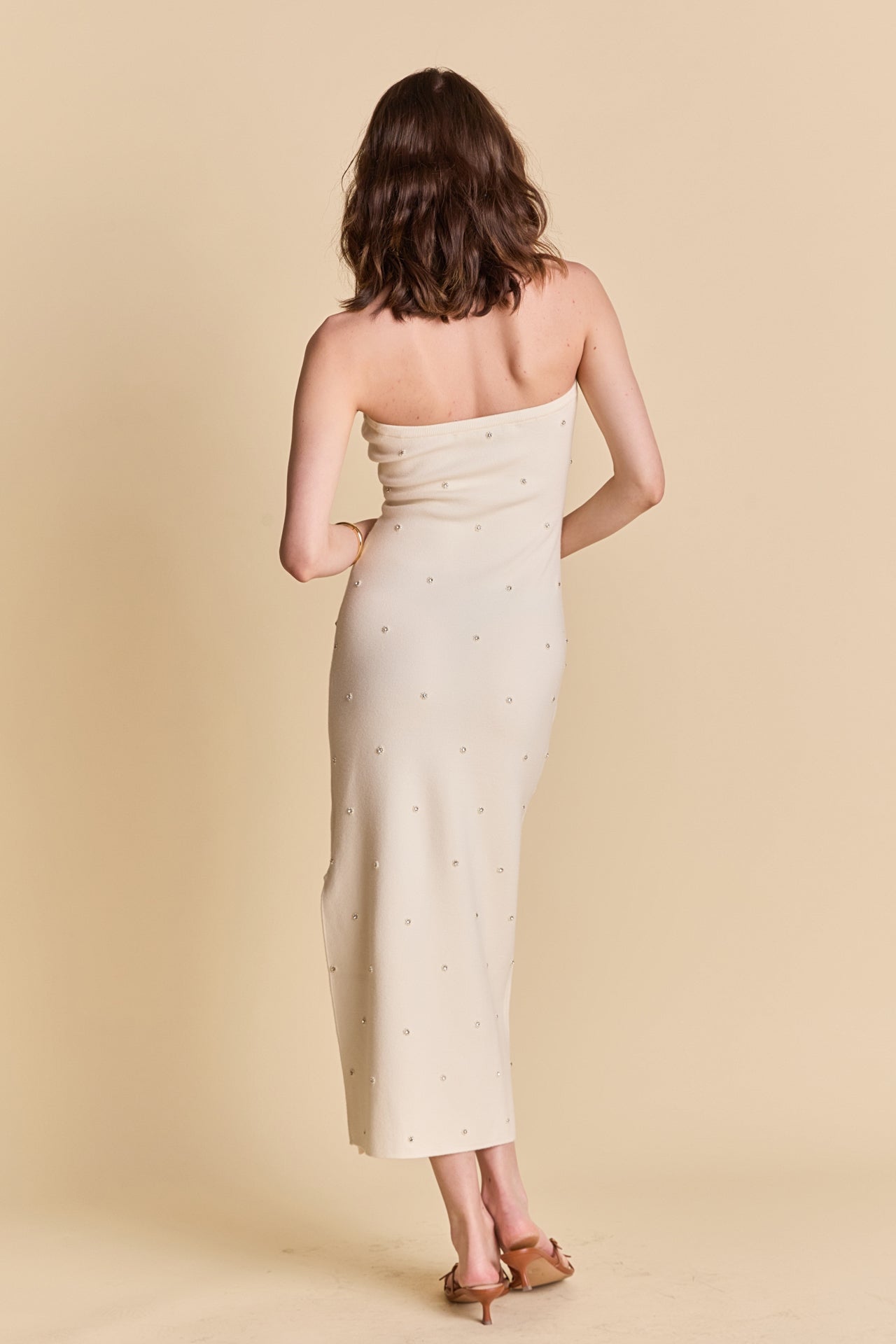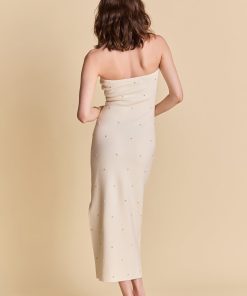 Unleash your inner fashionista with our gorgeous Embellished Strapless Knit Midi Dress. The knit fabric creates a flattering silhouette while keeping you comfortable all day long. With intricate embellishments and binding details, this dress is the ultimate combination of style and comfort. The strapless design adds a touch of glamour and makes it perfect for any special occasion. Pair it with your favorite heels and accessories for a stunning look. Stand out from the crowd in this must-have dress that is sure to turn heads. Shop now and make a statement with our Embellished Strapless Knit Midi Dress!
