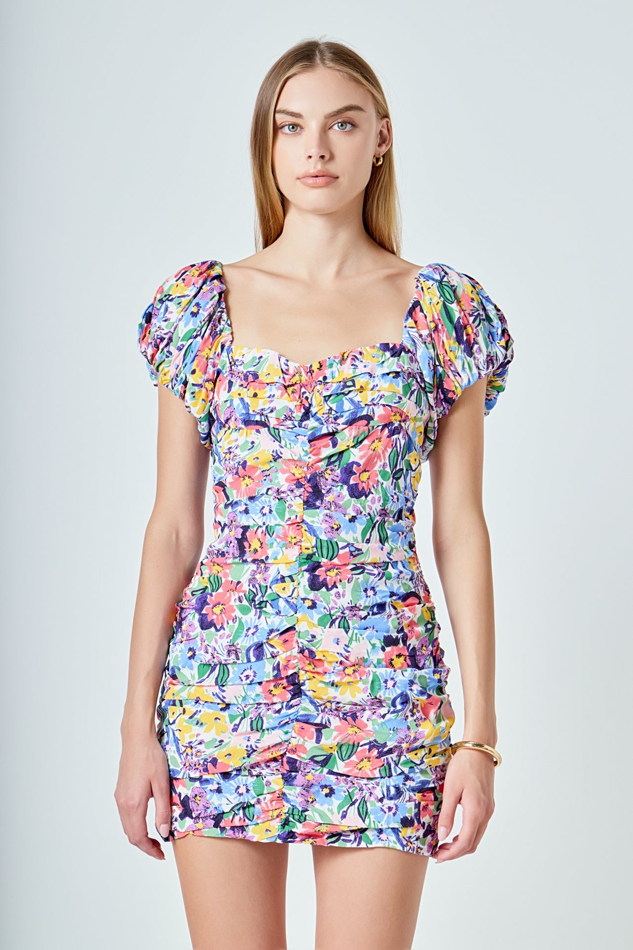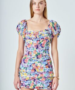 Turn heads in this flirty mini dress. With a pleated bust and ruched bodice, this dress is a show-stopper. The short puff sleeves are functional off the shoulder for a cool and relaxed look. The lining ensures you’ll feel comfortable all night long. This figure-hugging mini is perfect for any formal occasion, from weddings to galas.