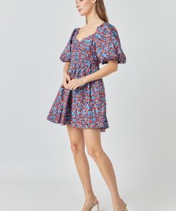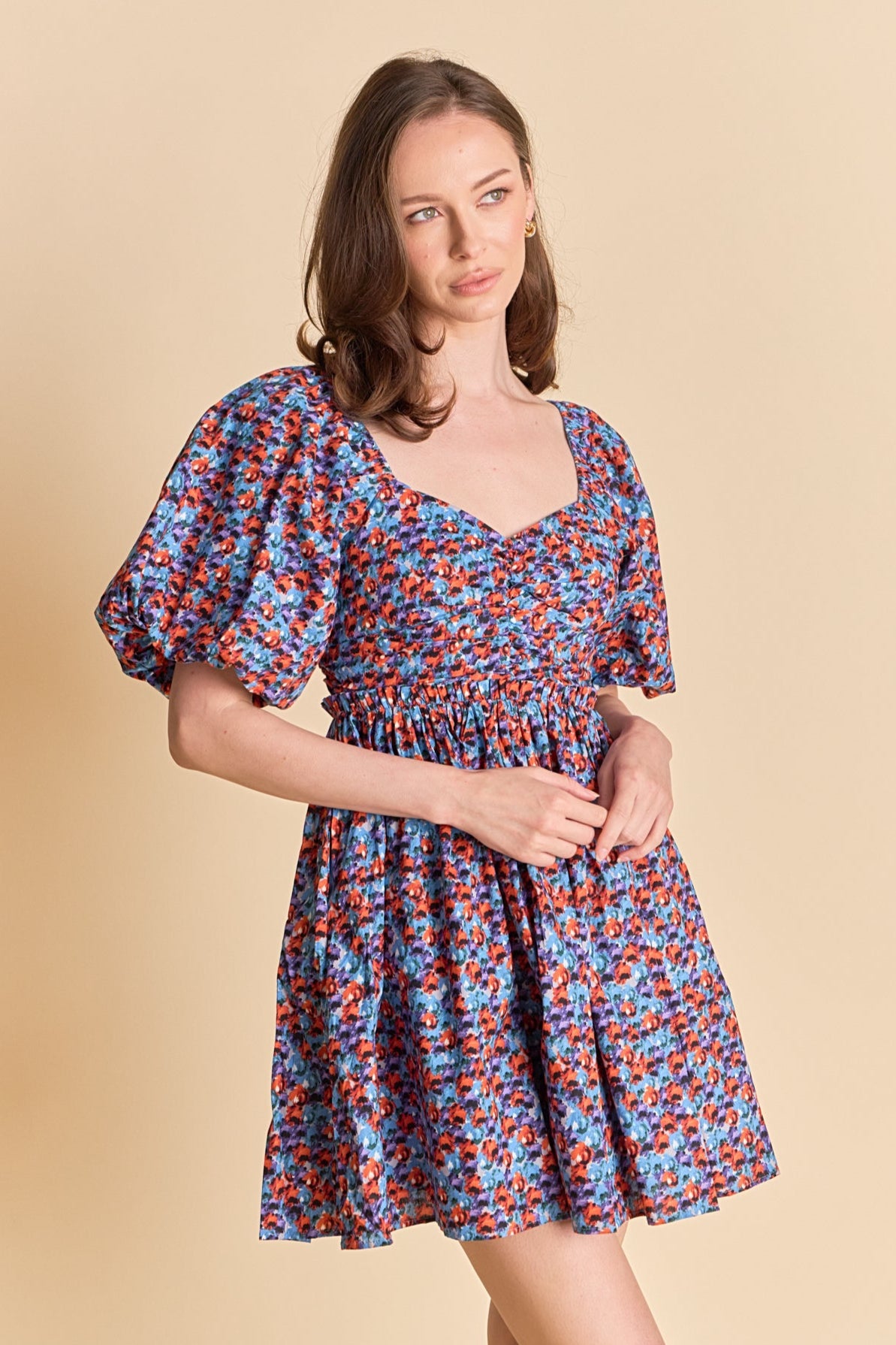 Looking for a gorgeous mini that will make you feel confident and beautiful? Made from cotton poplin, this floral mini has a shirred bust and elastic shoulders for a perfect fit. The blouson half sleeves, side pockets and smocking at the back add a feminine touch. Wear it to your next special event or out with friends – this mini is sure to turn heads!
