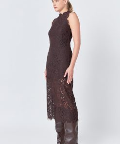 Unleash your feminine charm with our Front Slit Sleeveless Lace Maxi Dress. Featuring delicate lace details and a flattering sleeveless design, this dress is designed to make you feel beautiful and confident. The maxi length adds a touch of elegance, while the inner cami lining ensures comfort and coverage. Perfect for any special occasion or a night out, this dress is a must-have in every woman’s wardrobe. Don’t miss out on this gorgeous piece and add it to your collection today!