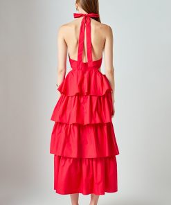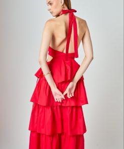 Our Halter Maxi Dress combines graceful design with understated detail. The crossed halter neckline and subtle front keyhole offer a modern, feminine touch, while the elastic waist provides a comfortable, flattering fit. Finished with a softly tiered skirt, this dress moves beautifully and works effortlessly for both day and evening occasions.