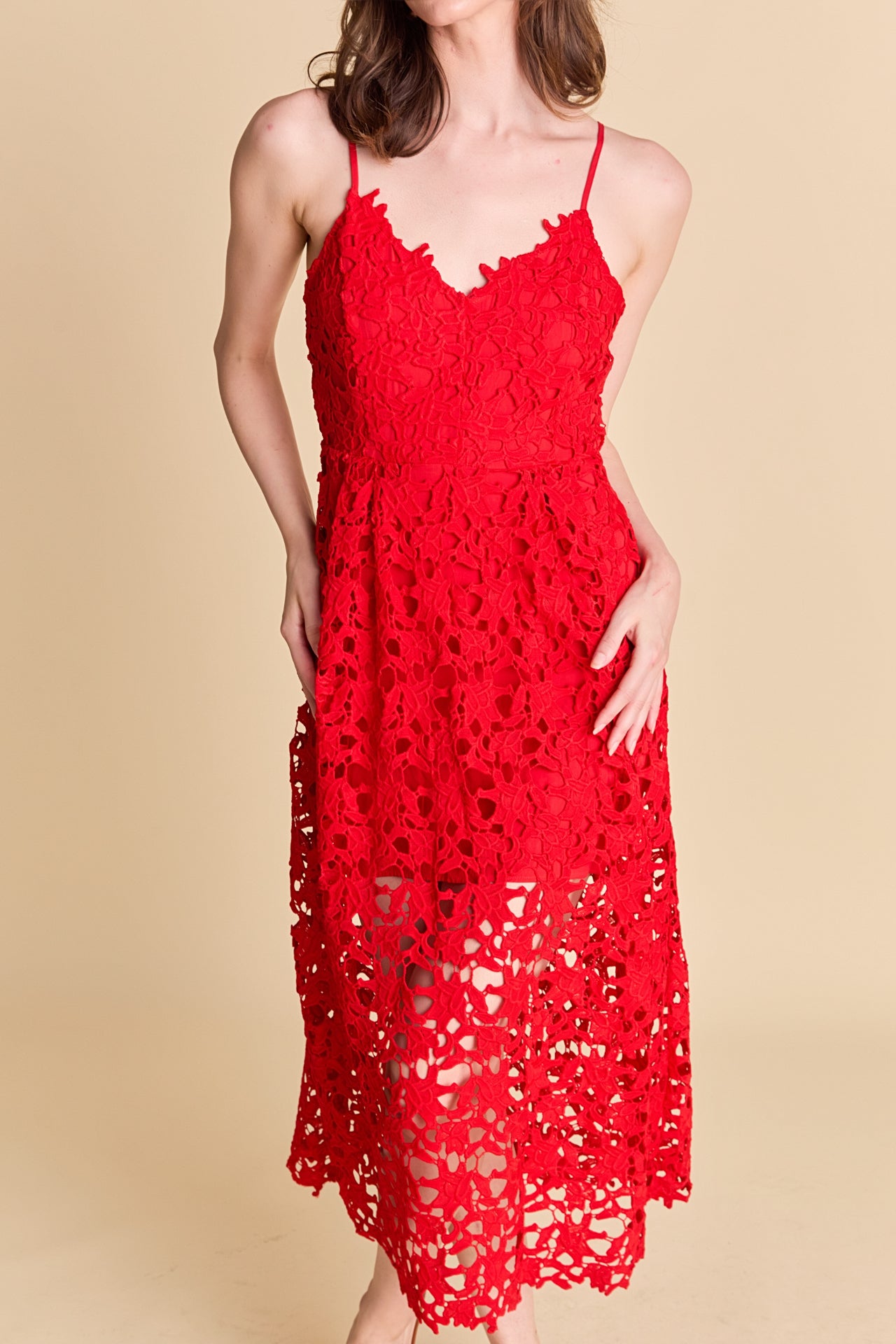 This versatile Lace Midi Dress from Endless Rose can be dressed up or down so you can wear it to all your events. Dress it up with heels for an anniversary dinner, or pair it with a jean jacket and sneakers for a day of running errands. The beautiful lace overlay is the star of this dress, while the adjustable spaghetti straps and back zipper ensure it fits like a glove.