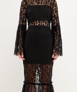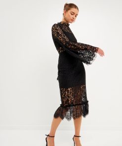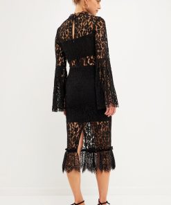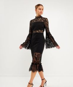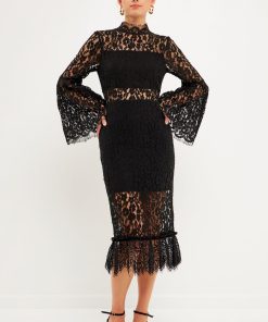 Endless Rose Women’s Dresses Long-sleeved Lace Midi Dress | Black