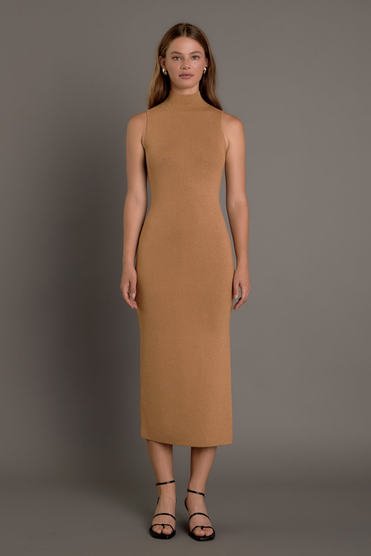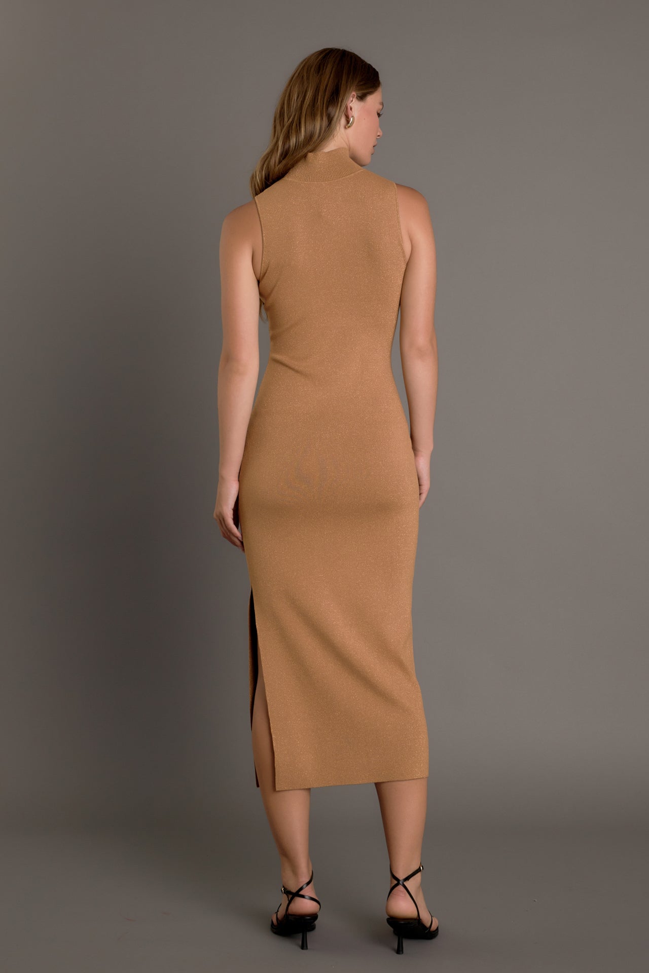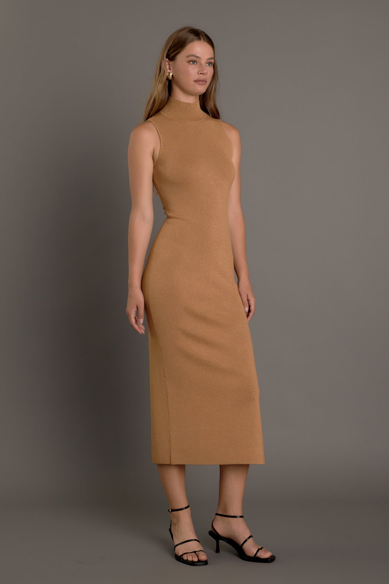 Step out in style with our Lurex High Neck Midi Dress. Designed to flatter any figure, the fitted silhouette of this dress accentuates your curves. The midi length offers a sophisticated look, while the turtle neck adds an elegant touch. The lurex knit fabric provides a subtle sparkle, making it perfect for any occasion – from a night out to a special event. This dress is a must-have for your wardrobe, adding a touch of glamour to your ensemble. Pair it with heels and statement jewelry for a chic look.
