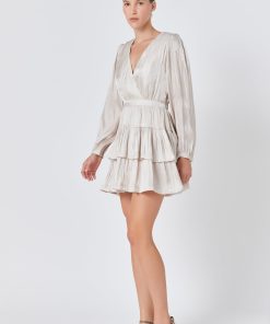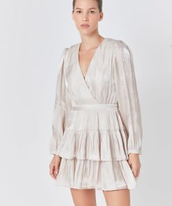 Elegant, stylish and on-trend, this mini dress is perfect for all your special occasions. With its sophisticated wrap design and tiered skirt, this dress is sure to make a statement. And thanks to the elastic waistband and shirring at the shoulder, it’s also super comfortable. Whether you’re attending a wedding or going out for dinner with friends, this dress is sure to impress.