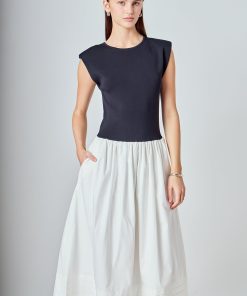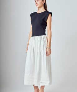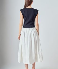 Endless Rose Women’s Dresses Mix Media Knit Midi Dress | Black & Ivory