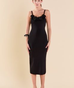 Endless Rose Women’s Dresses Mixed 3d Flower Knit Maxi Dress | Lavender|black
