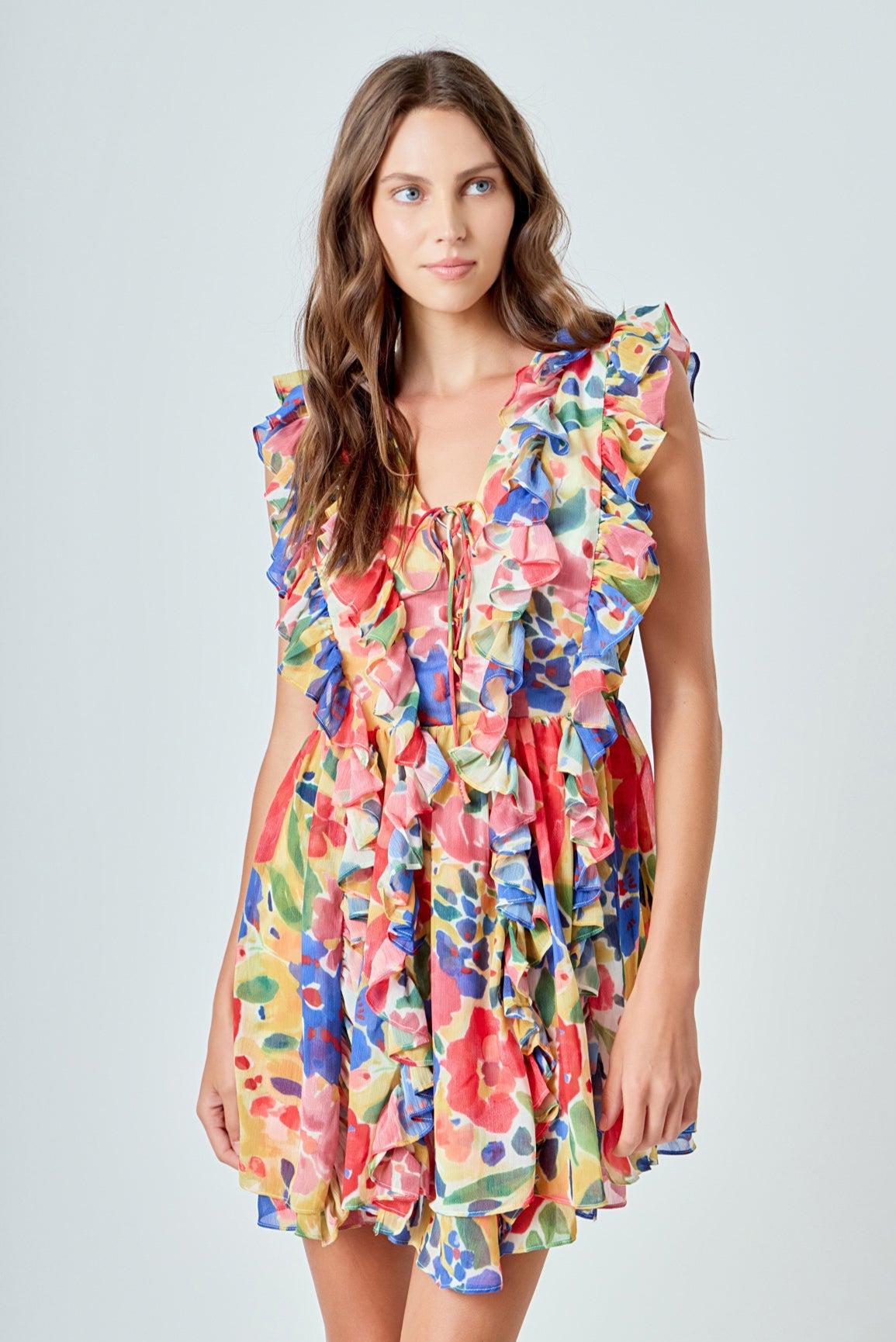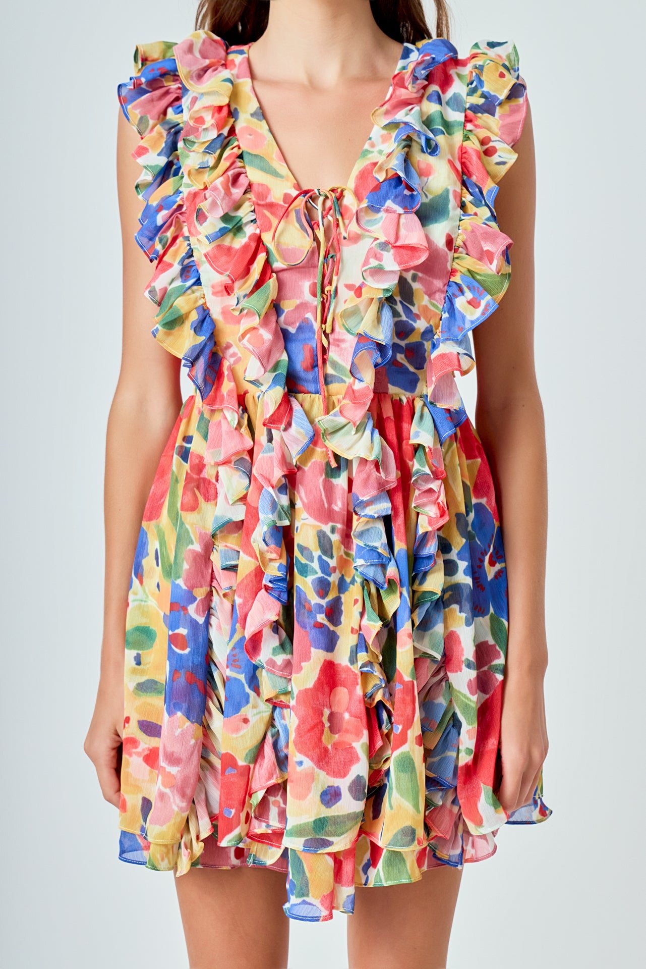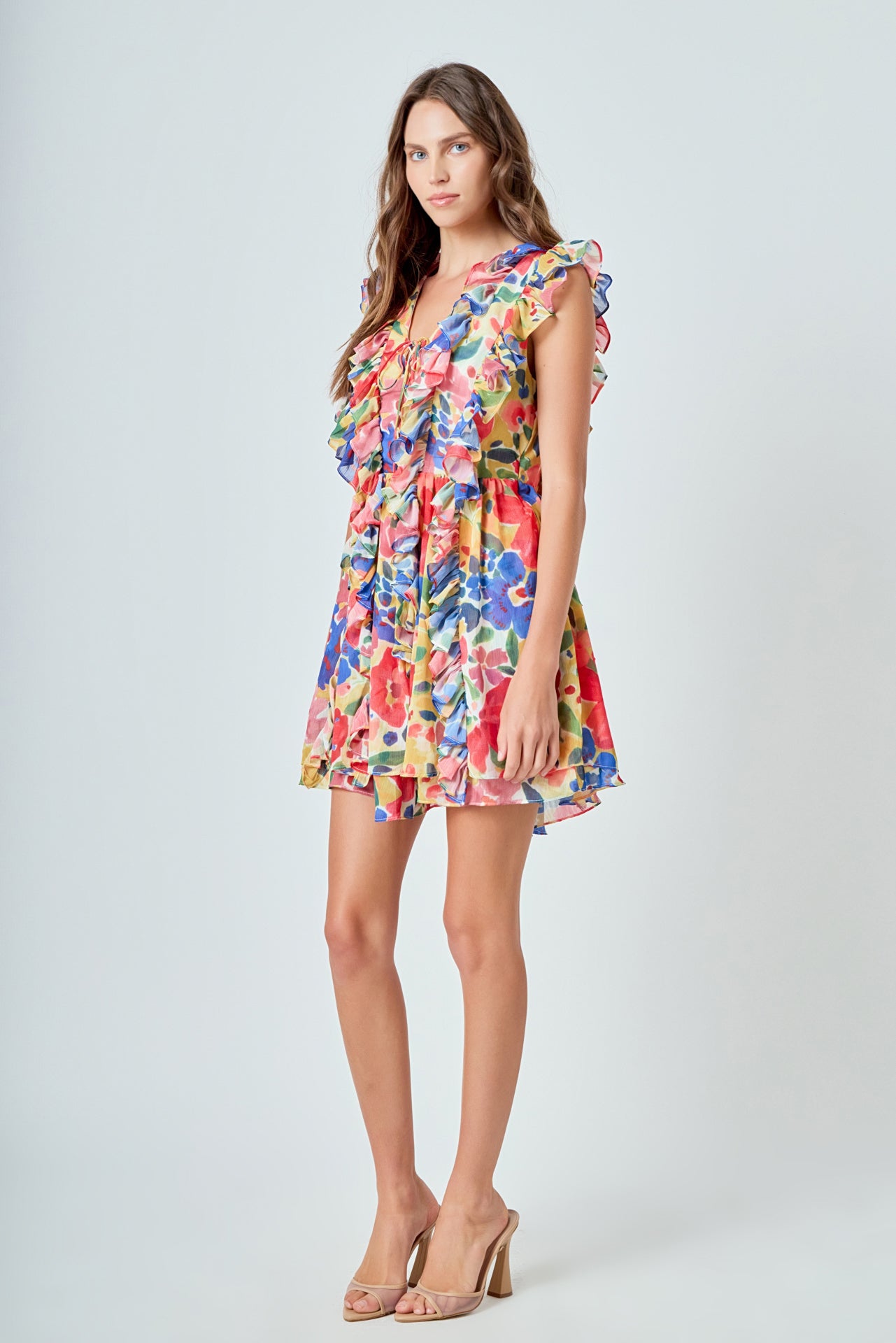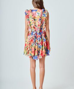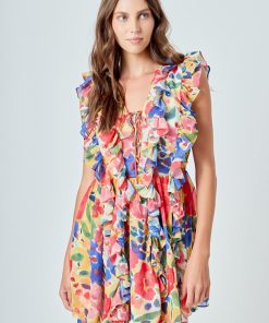 This fun and flirty mini dress is perfect for any summer occasion! The beautiful multi pop floral print will have you standing out in any crowd. And the ruffled bodice adds just the right amount of flirtiness. Pair this dress with wedges or sandals for a look that’s sure to turn heads.