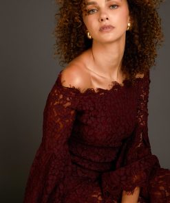 Endless Rose Women’s Dresses Off Shoulder Lace Maxi Dress | Burgundy