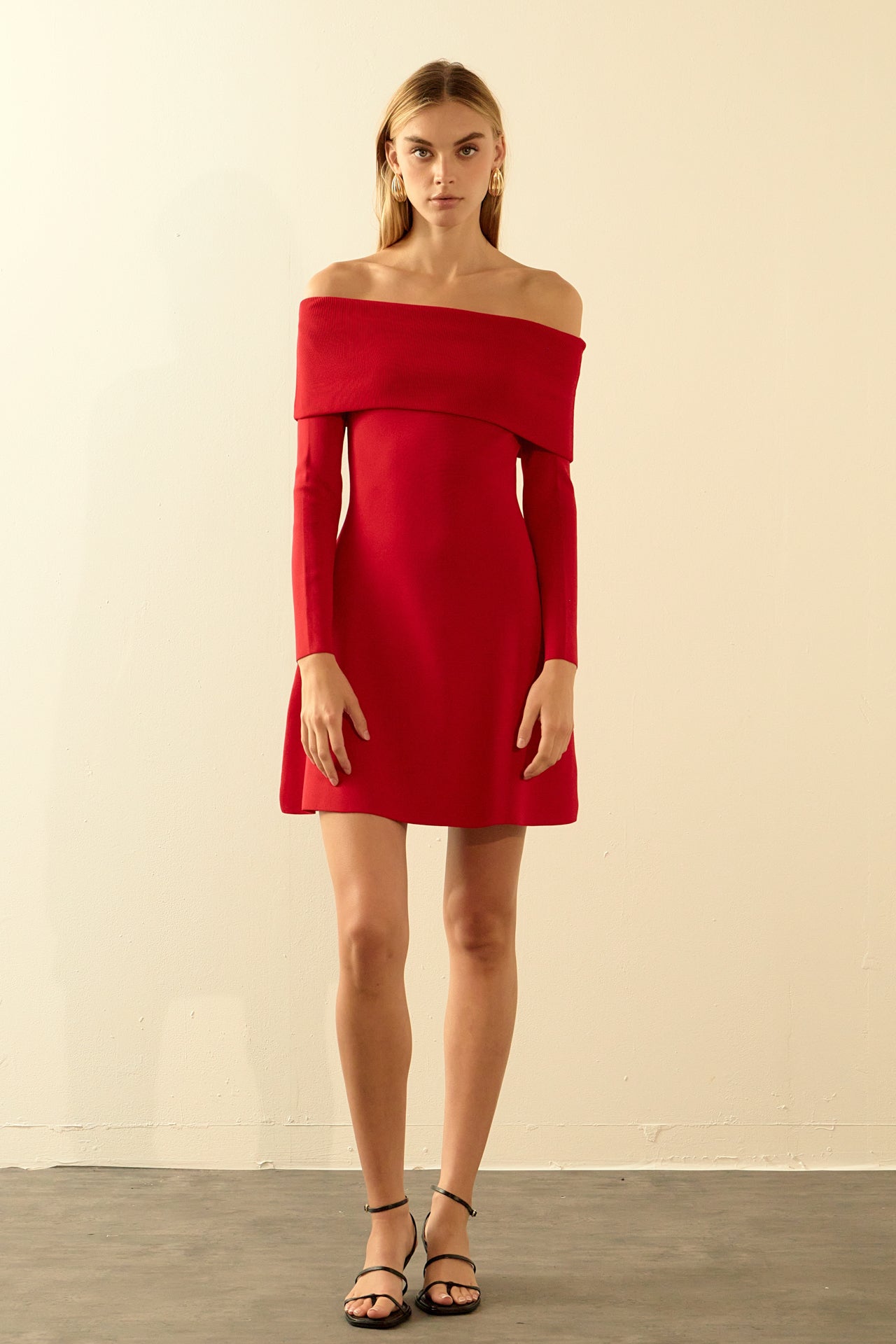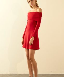 Be the center of attention in our Off Shoulder Mini Flare Knit Dress. Made from a high-quality, stretchy knit fabric, this dress hugs your curves in all the right places. The off-shoulder design adds a touch of elegance, while the long sleeves keep you warm on chilly nights. The fit and flare silhouette creates a flattering shape that will have you feeling confident and stylish. Perfect for a night out or special occasion, this dress is a must-have in your wardrobe. Shop now and make a statement in our Off Shoulder Mini Flare Knit Dress!