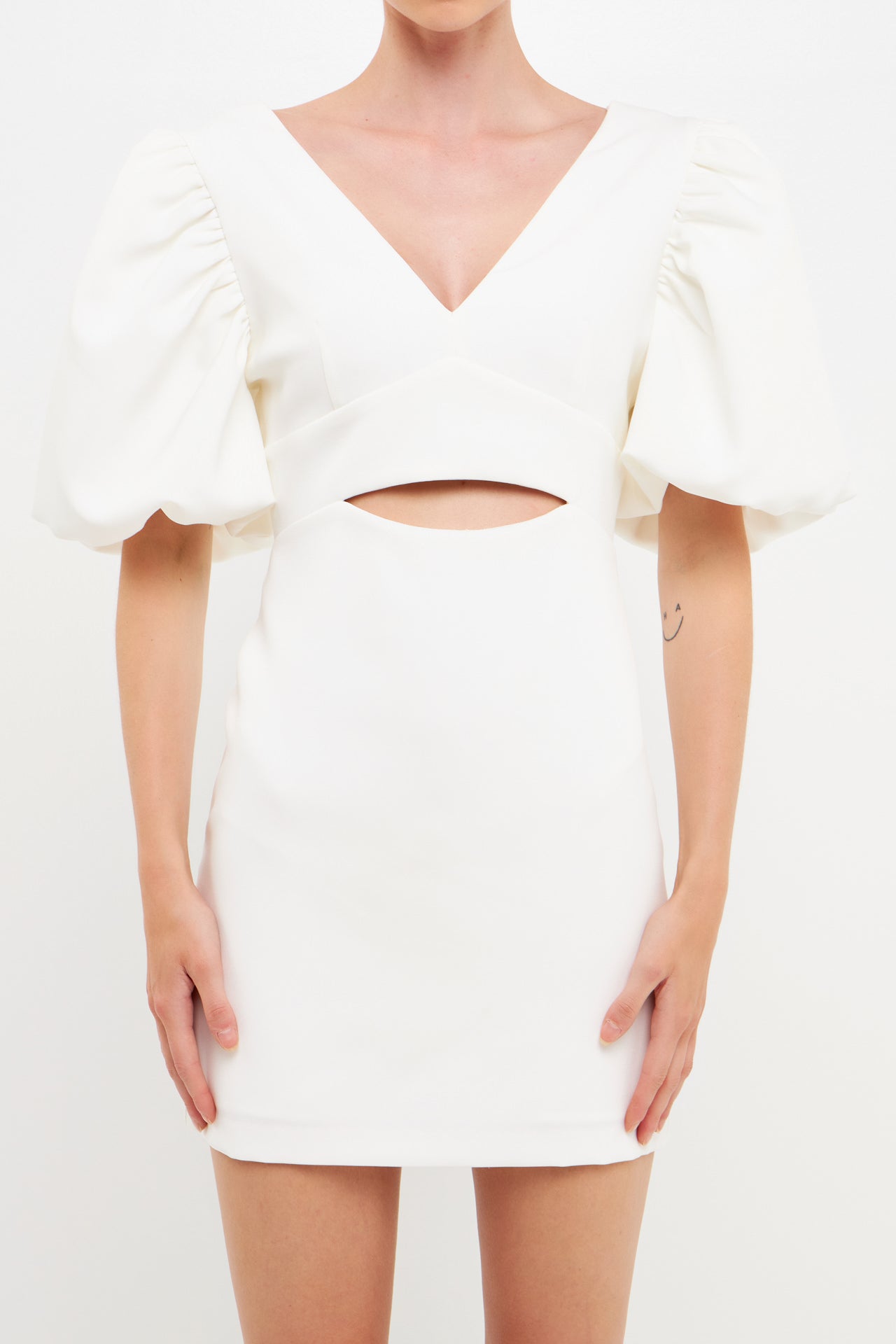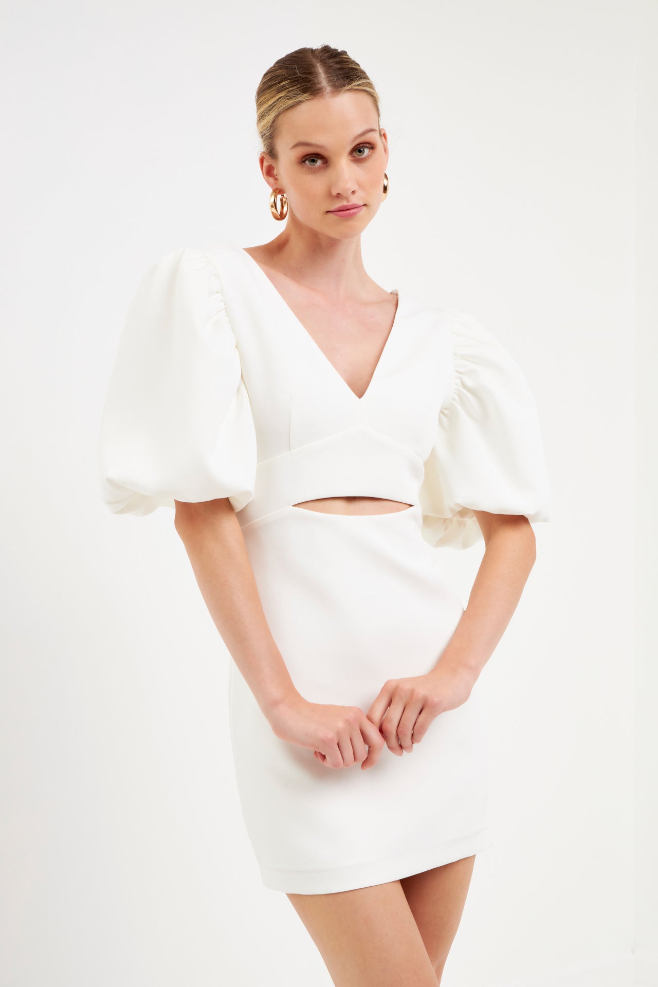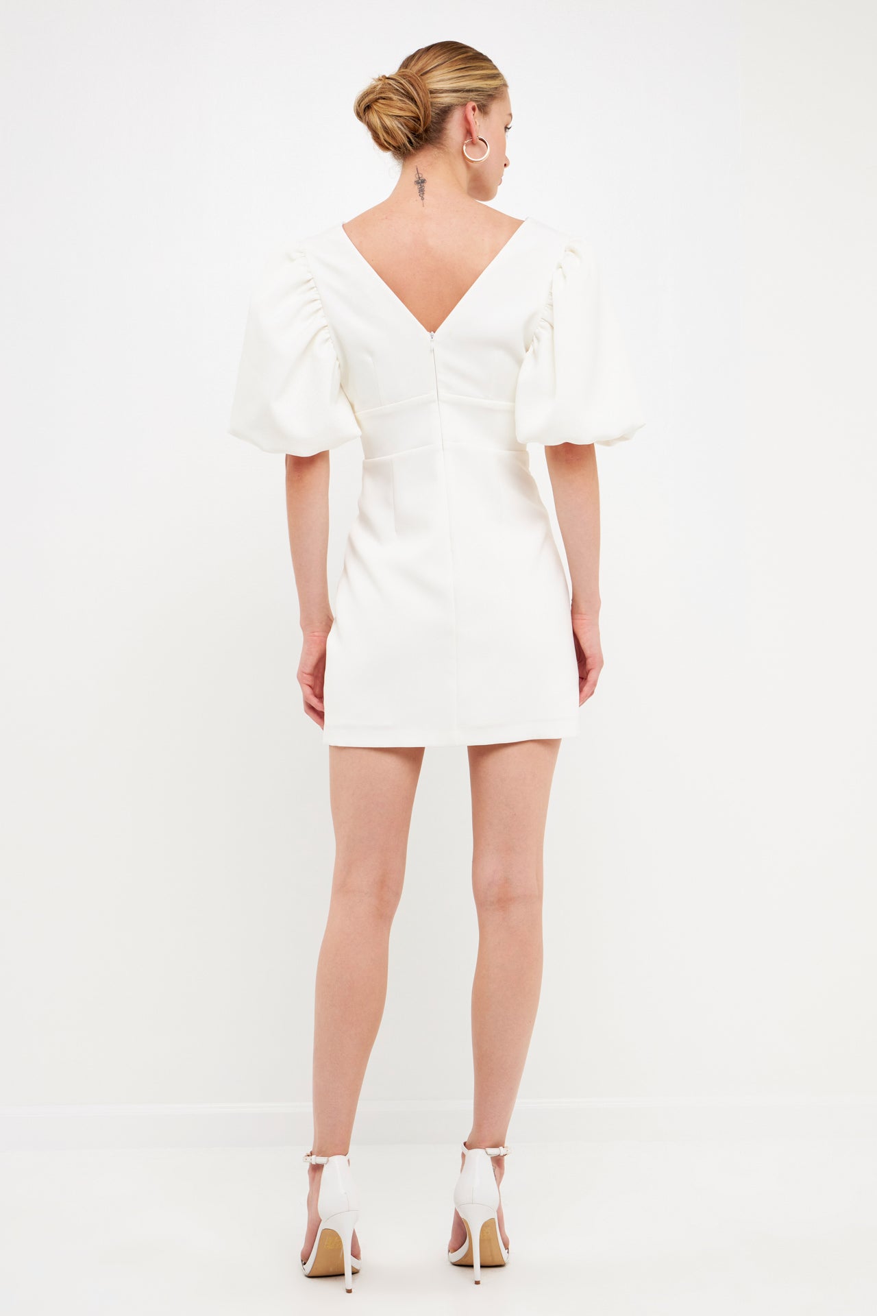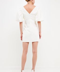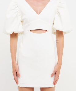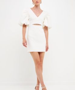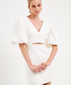 This season’s hottest look? The puff sleeve mini. With all the details you love–a blouson short sleeve, waist cut-out and back zipper–this fitted mini is a must-have. Pair it with your favorite heels and hit the town.