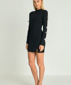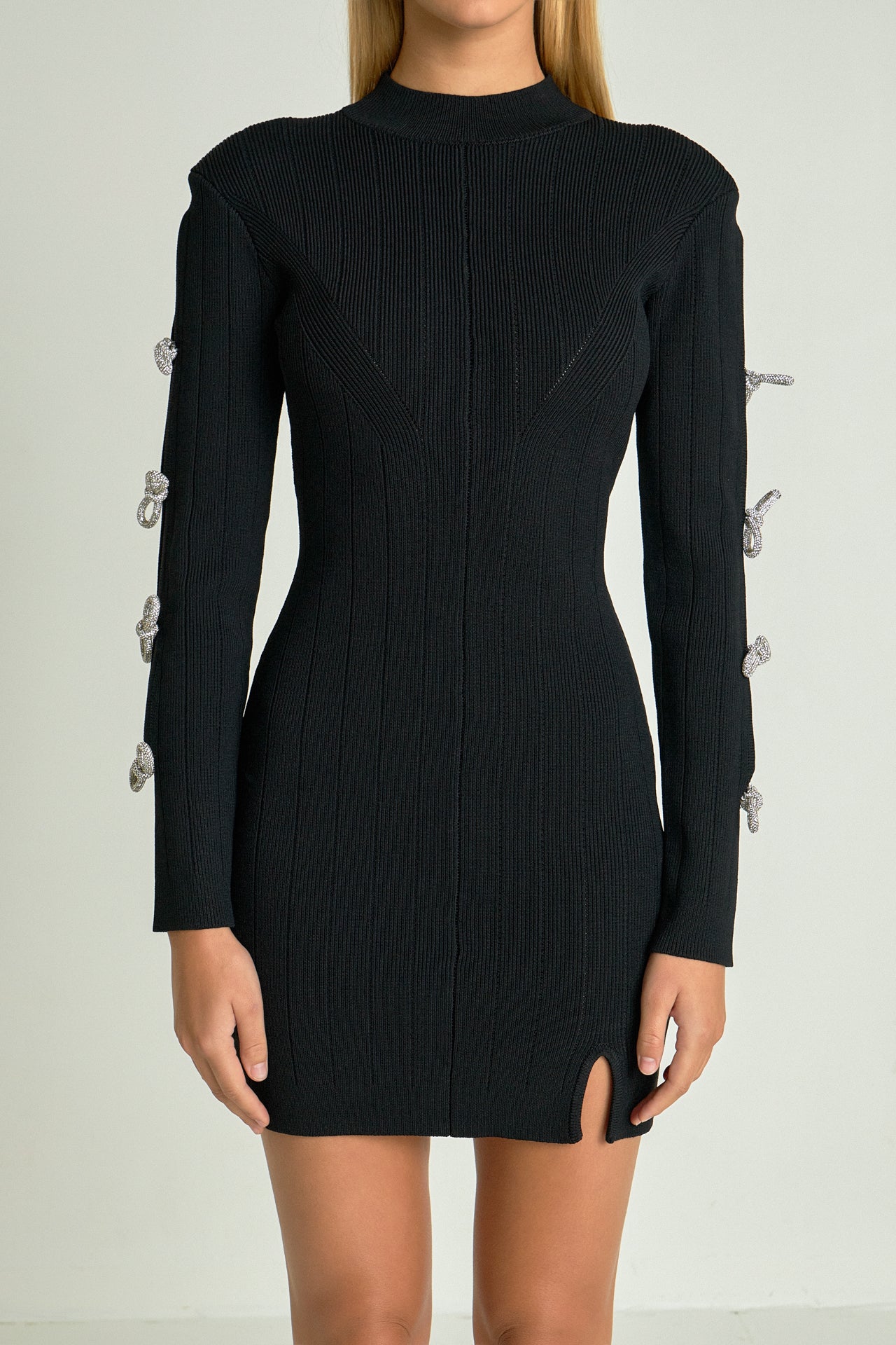 Endless Rose Women’s Dresses Rhinestone Bow Knit Dress | Black