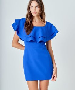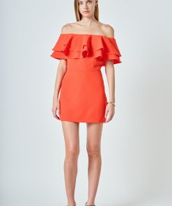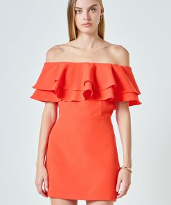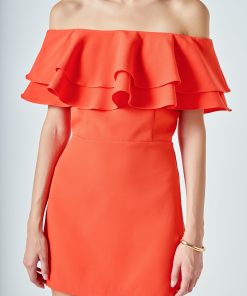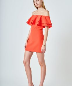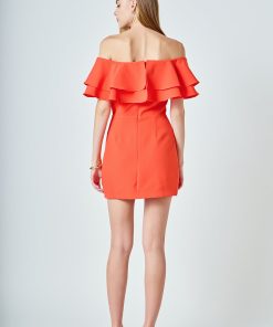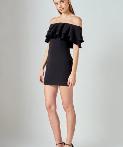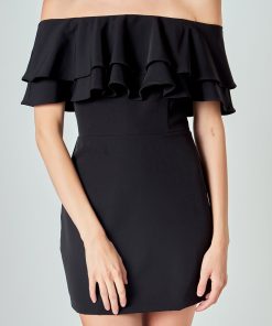 Feel confident and flirty in this ruffled off-shoulder mini dress. The perfect mix of sweet and sexy, this dress features 2 layers of ruffles along the neckline. The mini length is perfect for showing off your legs, while the center back zipper closure ensures a perfect fit. Whether you’re headed to a party or a night out on the town, this dress is sure to turn heads.