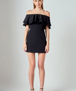 Feel confident and flirty in this ruffled off-shoulder mini dress. The perfect mix of sweet and sexy, this dress features 2 layers of ruffles along the neckline. The mini length is perfect for showing off your legs, while the center back zipper closure ensures a perfect fit. Whether you’re headed to a party or a night out on the town, this dress is sure to turn heads.