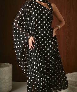 Sash Polka Dot Maxi Dress is the perfect blend of fun and elegance. The classic polka dot print adds a playful touch to this floor-length dress, while the sash accentuates your waist for a flattering silhouette. The one shoulder style and bat wing sleeves give a modern twist to this timeless design. It’s made with high-quality, lightweight fabric that drapes beautifully on any body shape. Perfect for any occasion, this dress will have you looking stylish and chic. Make a statement and stand out in this eye-catching dress. Shop now and embrace your unique style!