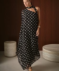 Sash Polka Dot Maxi Dress is the perfect blend of fun and elegance. The classic polka dot print adds a playful touch to this floor-length dress, while the sash accentuates your waist for a flattering silhouette. The one shoulder style and bat wing sleeves give a modern twist to this timeless design. It’s made with high-quality, lightweight fabric that drapes beautifully on any body shape. Perfect for any occasion, this dress will have you looking stylish and chic. Make a statement and stand out in this eye-catching dress. Shop now and embrace your unique style!