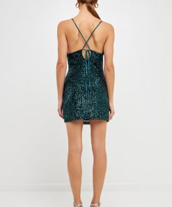 This figure-hugging mini dress is a glamorous, timeless style that will soon become one of your favorites. The sequin fabric is stretchy so it hugs your curves while being ultra comfortable. The satin straps crisscross your back and tie off to create a feminine keyhole detail. It’s details like this that make this sequin mini dress simple, yet stunning.