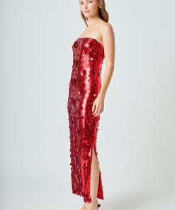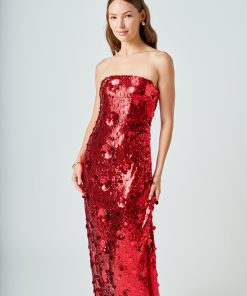 Dazzle the night away in our Sequins Applique Midi Dress. This stunning strapless dress is the perfect addition to your party wardrobe. The midi length offers a sophisticated touch while the side zipper ensures a sleek and comfortable fit. The sequin applique adds just the right amount of sparkle to make you stand out from the crowd. Perfect for any occasion, this dress will have you feeling confident and glamorous. Elevate your style game and make a statement in our Sequins Applique Midi Dress. Shop now and shine bright all night!