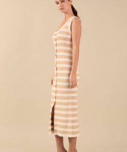 Our Striped Strapless Midi Dress is a must-have for your wardrobe! Made from high-quality knitdown fabric this midi dress will flatter your figure while keeping you comfortable all day. The strapless design adds a touch of elegance perfect for any occasion. The midi length provides just the right amount of coverage making it a versatile choice for any season. With its trendy striped pattern this dress will surely turn heads. Don’t miss out on this fashionable and timeless piece! Order now and elevate your style game.