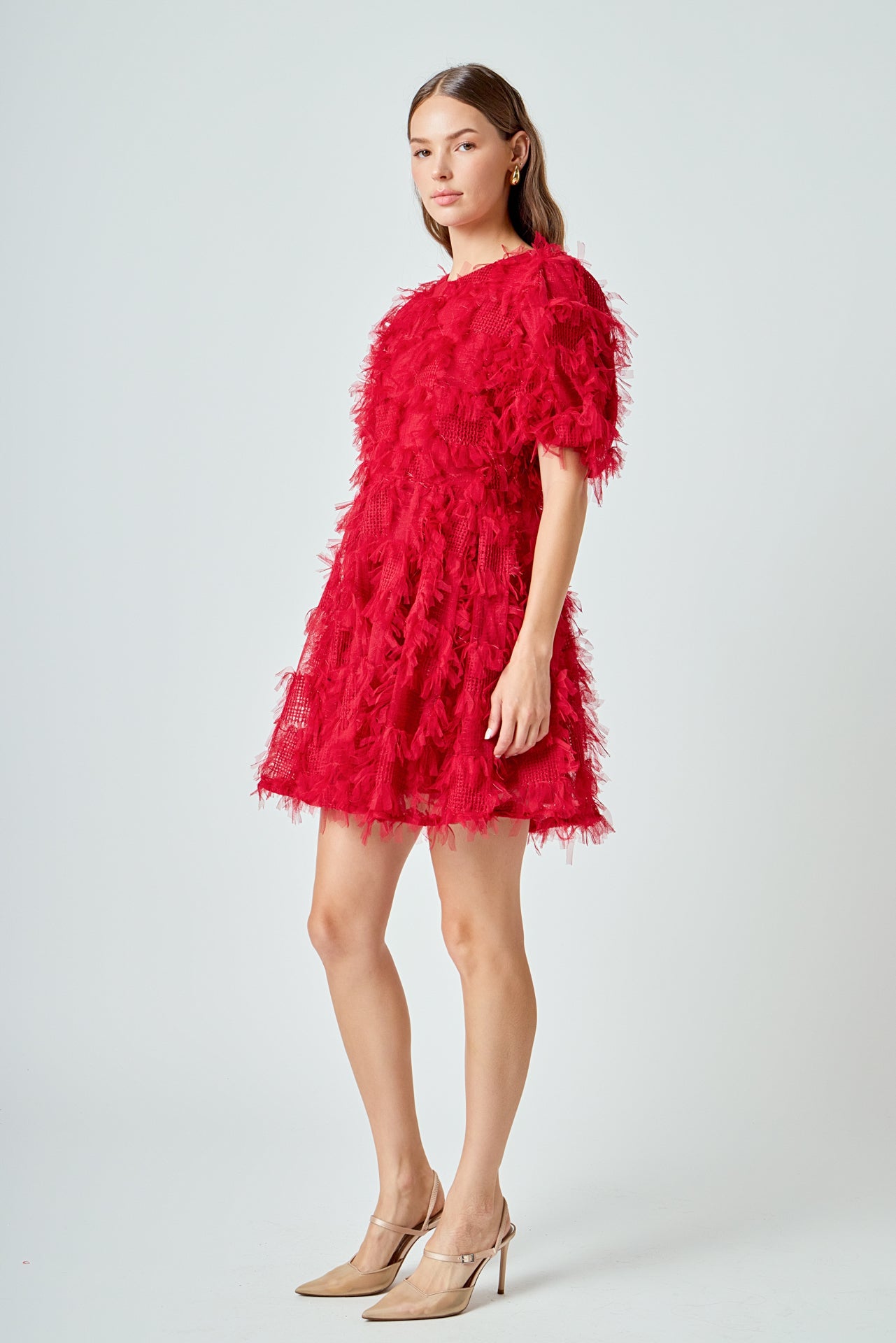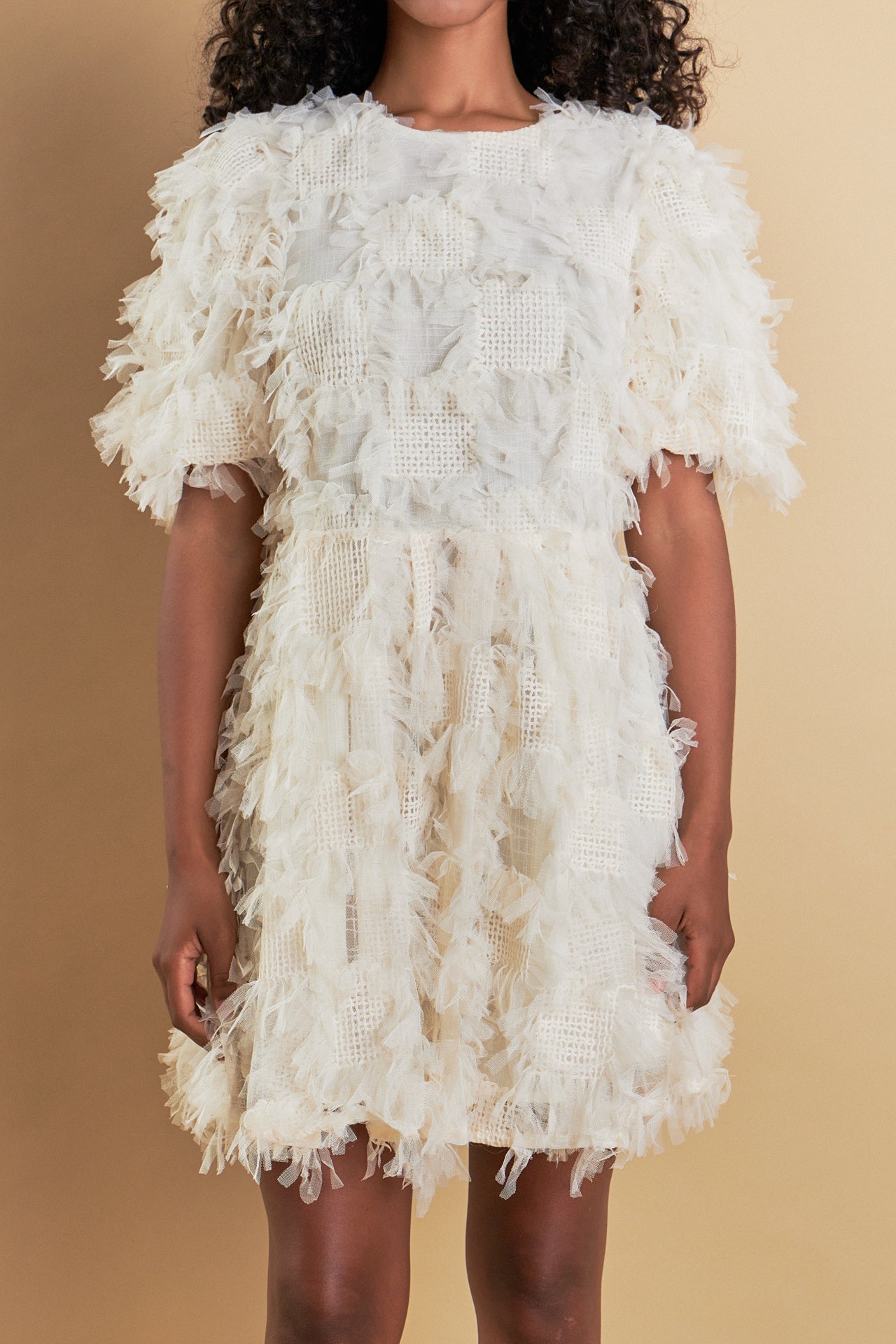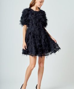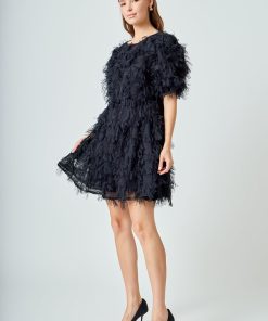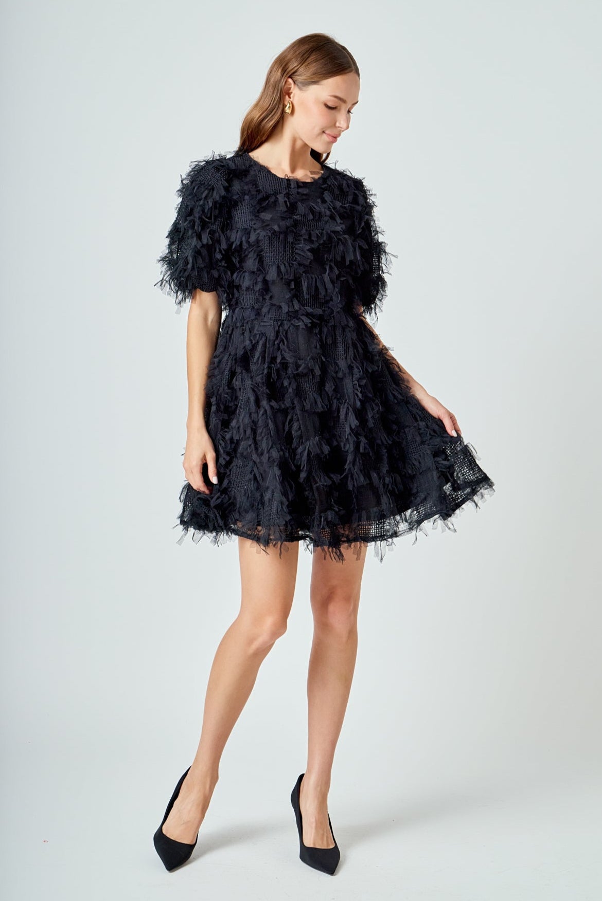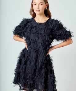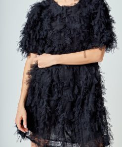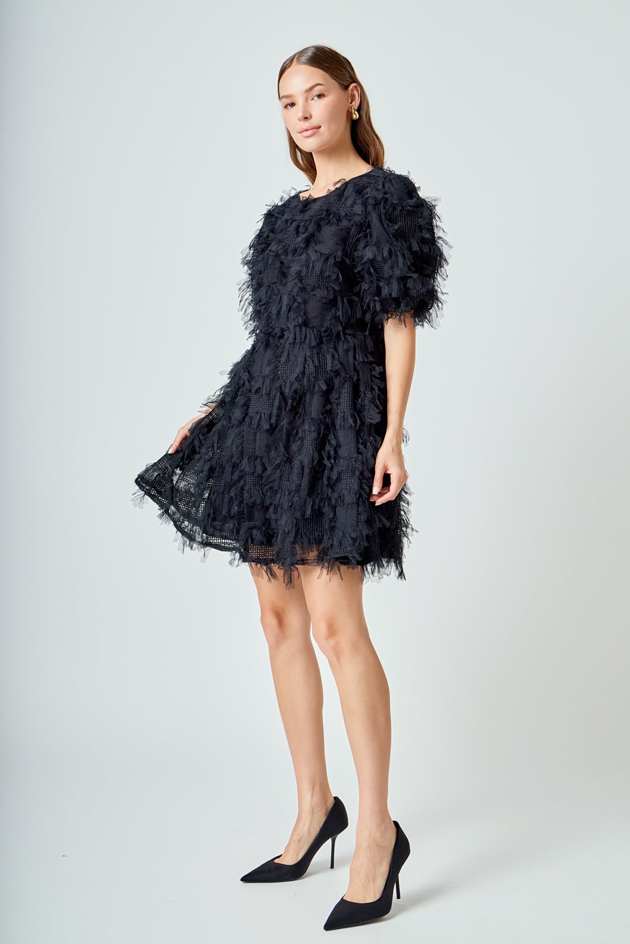 Add a touch of glamor to your everyday look with our Textured Mesh Mini Dress. The intricate mesh fabric and puffy sleeves create a whimsical look. This dress can easily be taken from day to night, and the relaxed fit means you’ll be comfortable all day long. Pair this dress with heels and a clutch for a look that will turn heads on your nights out, or style it with a denim jacket and sneakers for a cute and casual daytime outfit.