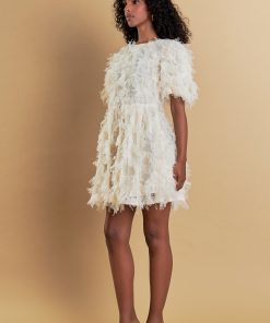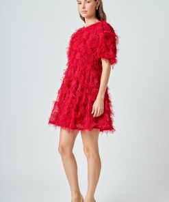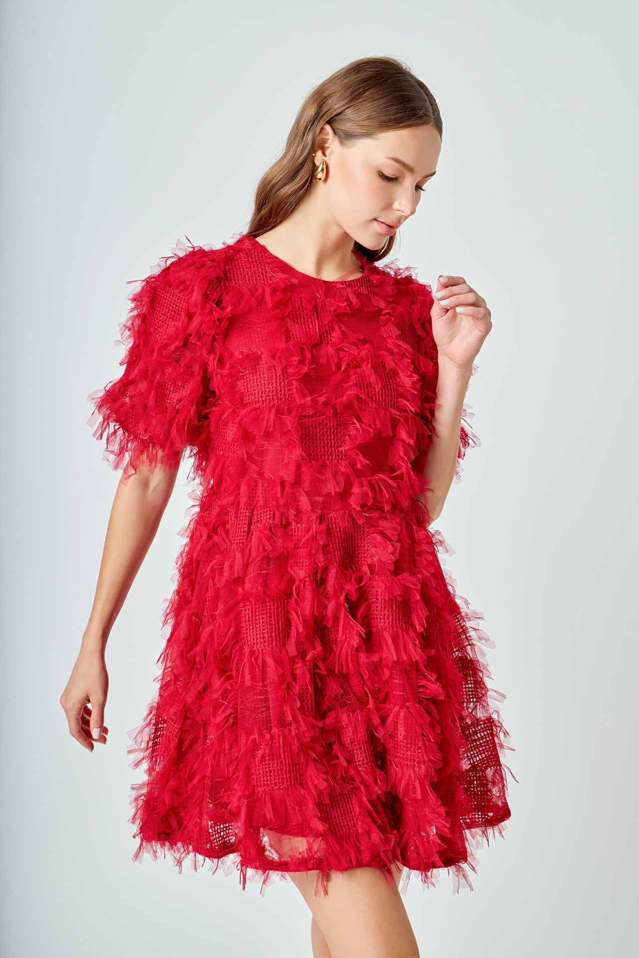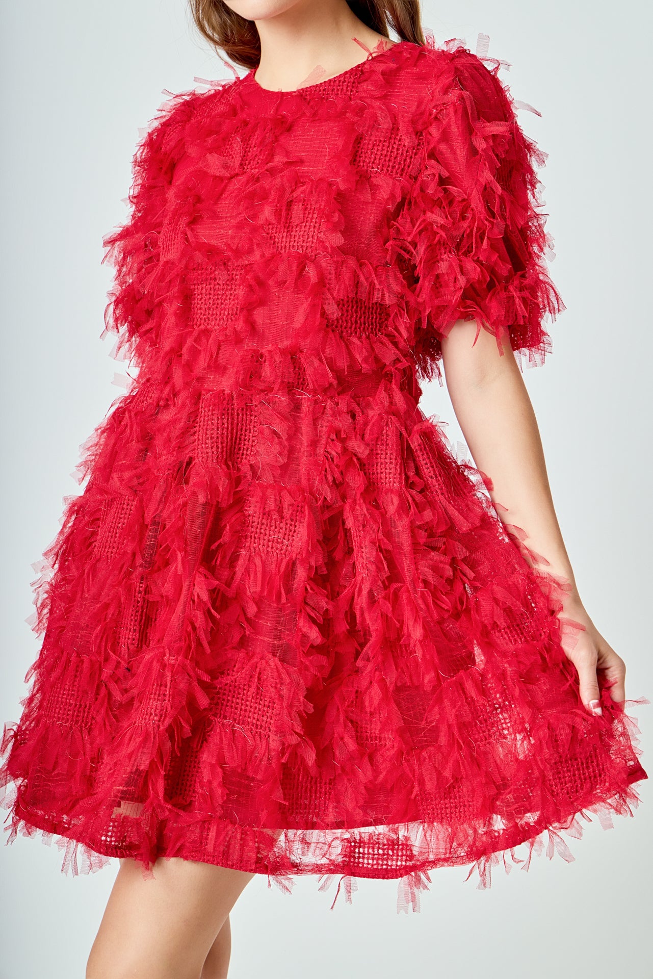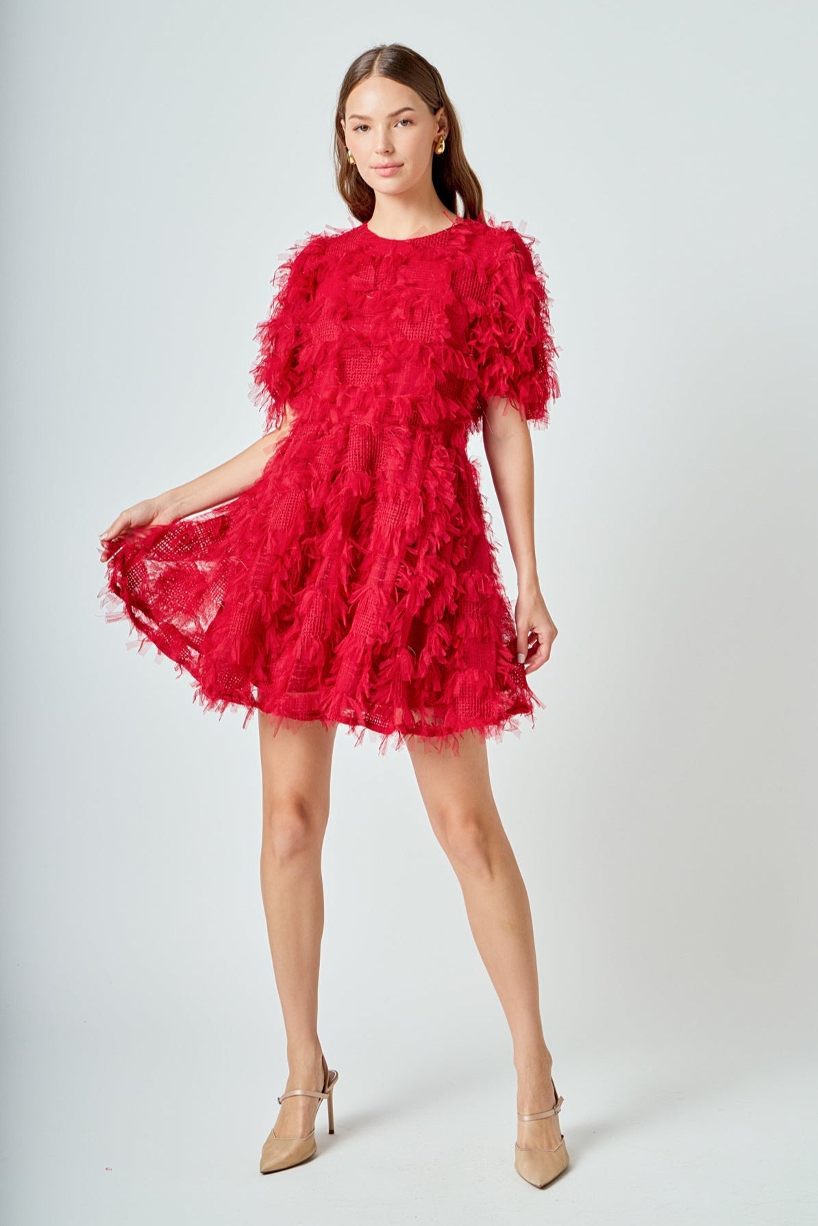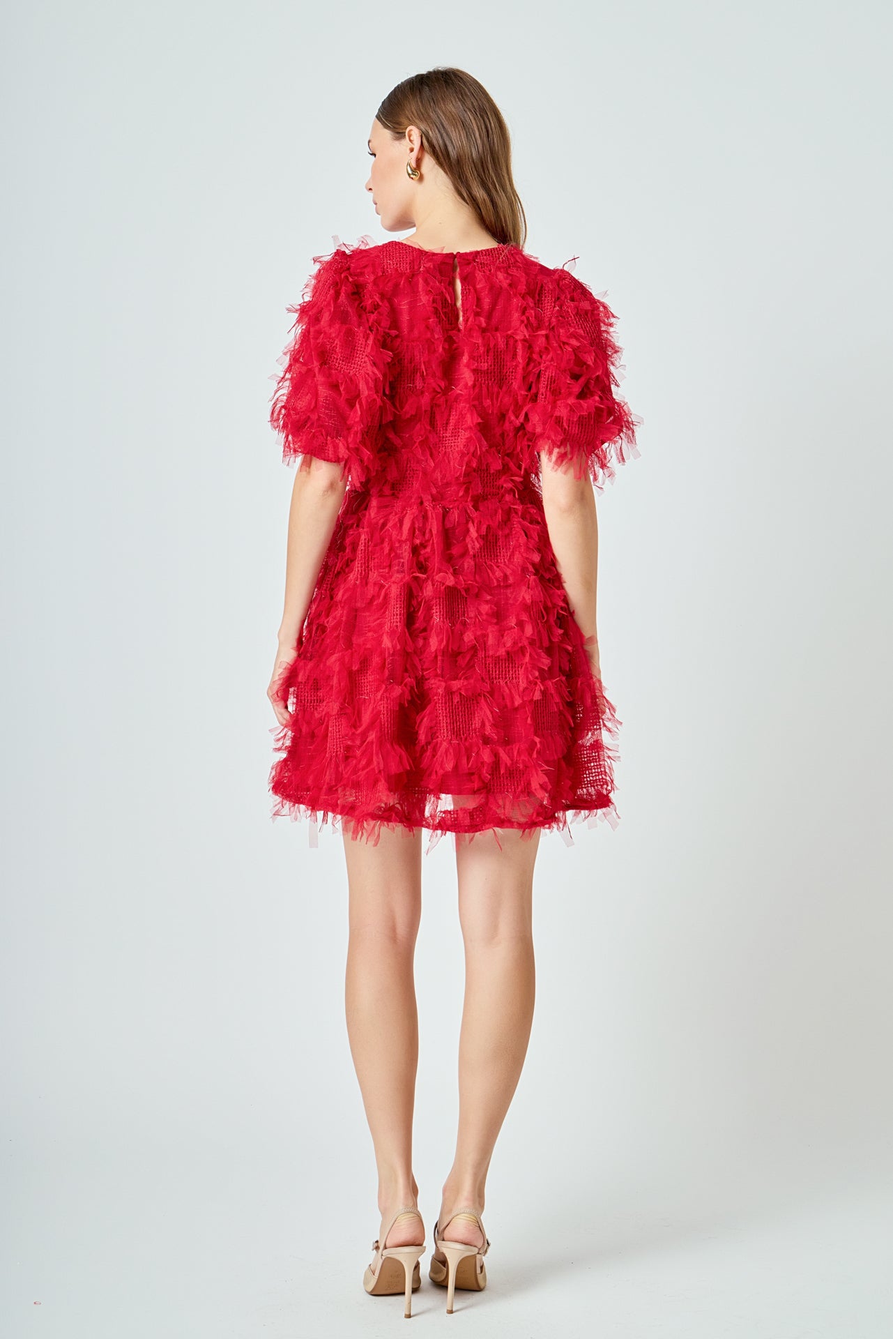 Add a touch of glamor to your everyday look with our Textured Mesh Mini Dress. The intricate mesh fabric and puffy sleeves create a whimsical look. This dress can easily be taken from day to night, and the relaxed fit means you’ll be comfortable all day long. Pair this dress with heels and a clutch for a look that will turn heads on your nights out, or style it with a denim jacket and sneakers for a cute and casual daytime outfit.