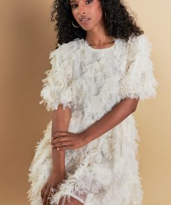 Add a touch of glamor to your everyday look with our Textured Mesh Mini Dress. The intricate mesh fabric and puffy sleeves create a whimsical look. This dress can easily be taken from day to night, and the relaxed fit means you’ll be comfortable all day long. Pair this dress with heels and a clutch for a look that will turn heads on your nights out, or style it with a denim jacket and sneakers for a cute and casual daytime outfit.